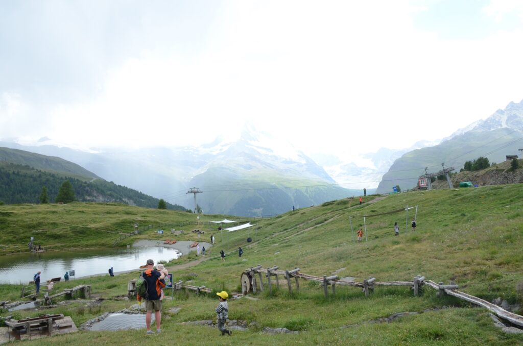 我们是六月三十号来到Zermatt的,那天天气不太好,所以我们没有坐缆车上Glacier Paradise去看马特洪峰,因为即便上去了也看不到。其实我们在缆车站还是等了好一阵子的,但天气并没有转好。我们于是乎去了另一个小山头Sunnegga,那里有Wolli adventure park,相当于一个室外游乐场,对于带娃的我们来说,这可能是更好的一个选择吧。